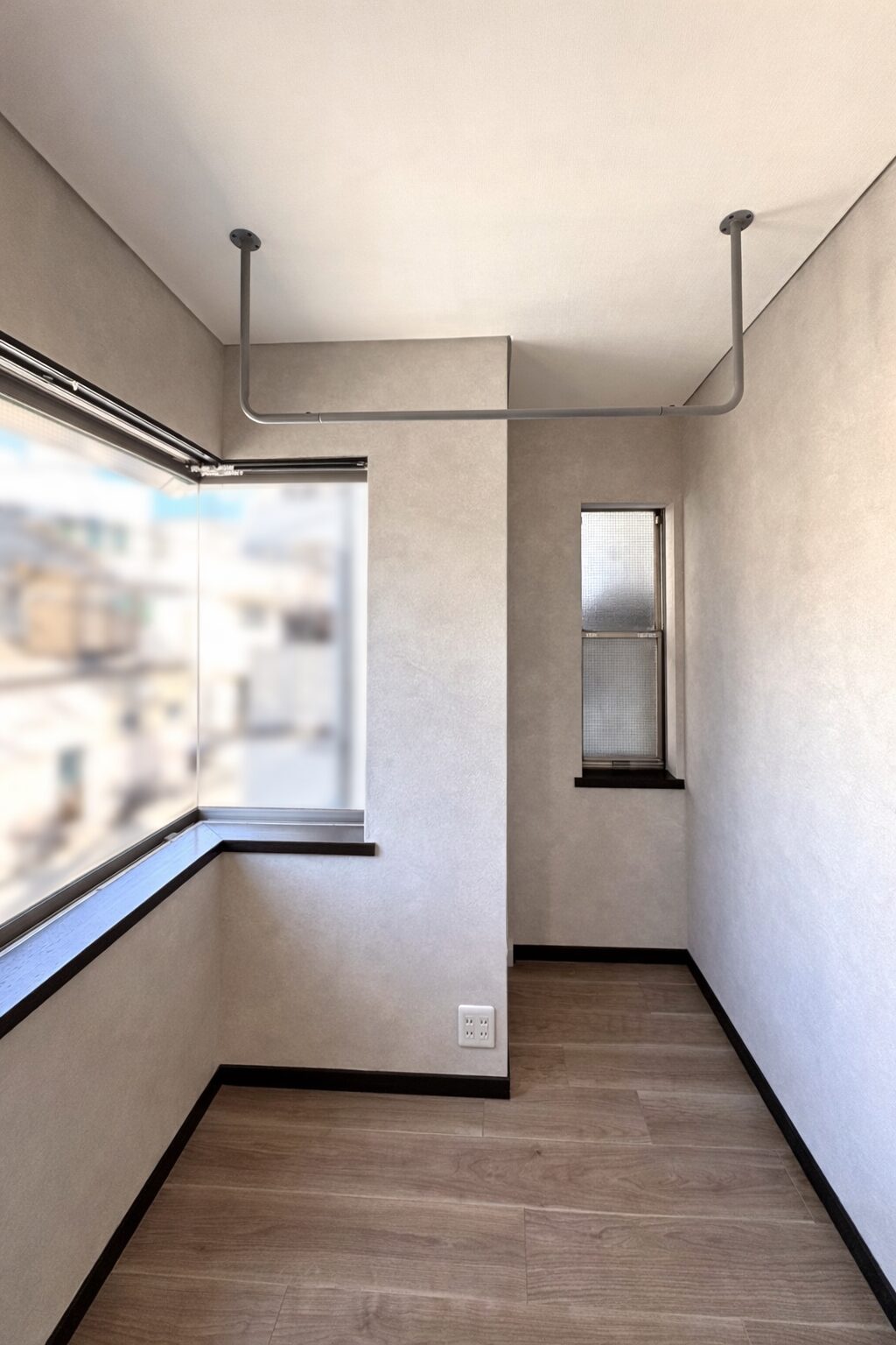 ●リビングの一角に、お天気の悪い日には洗濯物を干せるバーを設置。
