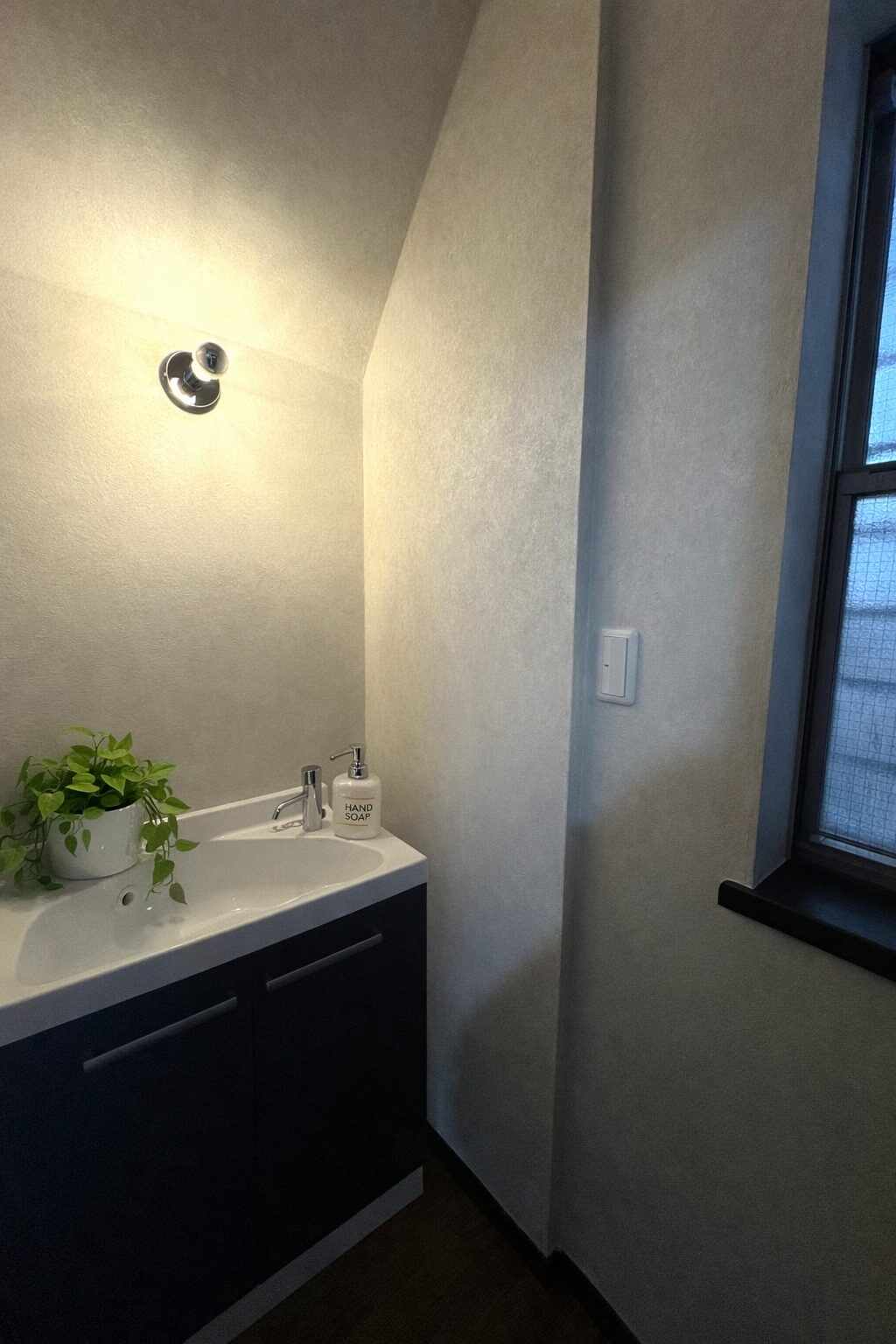 ●廊下に設けた洗面は、機能だけでなく空間としての質にもこだわり、”通路の中の主役”となる存在に仕上げました。洗面はLIXILリフラを採用。