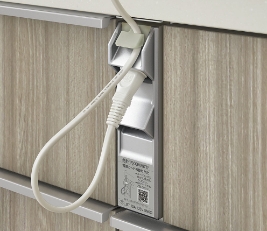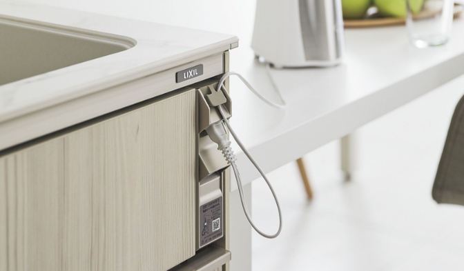シンクキャビネットには、コードの抜き差しも簡単な手元部分の2口コンセント付のタイプもございます。1500Wまで対応しているので、さまざまな調理家電が安心して使えます。