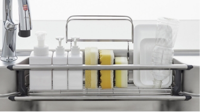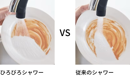 大きなものから小さなものまで効率よく洗えます。水が通り抜けてすすぎ洗いが面倒だったザルなどの道具も、ワイドで洗浄力のあるシャワーでサッときれいに洗い流せます。