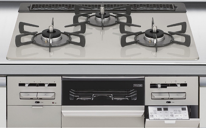 ガラストップタイプ 3口コンロ(無水両面焼グリル)