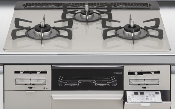 3口バーナーを搭載。煮る・焼く・炒める、を同時にこなせ、忙しい毎日の調理を効率よく進められます。