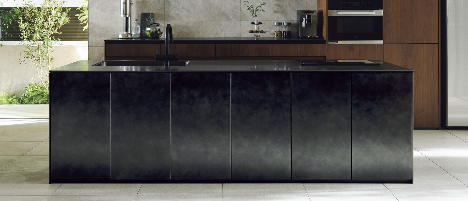 熱やキズ、汚れに、優れた耐久性を発揮するセラミック。その美しさを長く保てる理想的なワークトップ素材です。