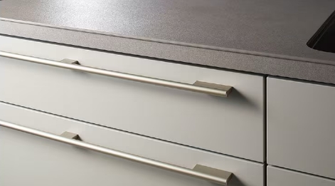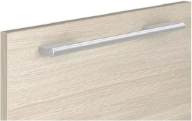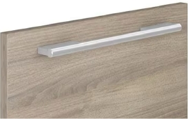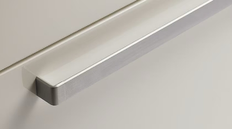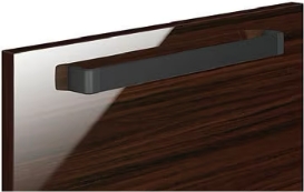 シンプルさが魅力のスリム取手。厚さ9mmの取手がキッチンユニットにきれいにラインを通し、洗練されたシャープな空間を演出します。